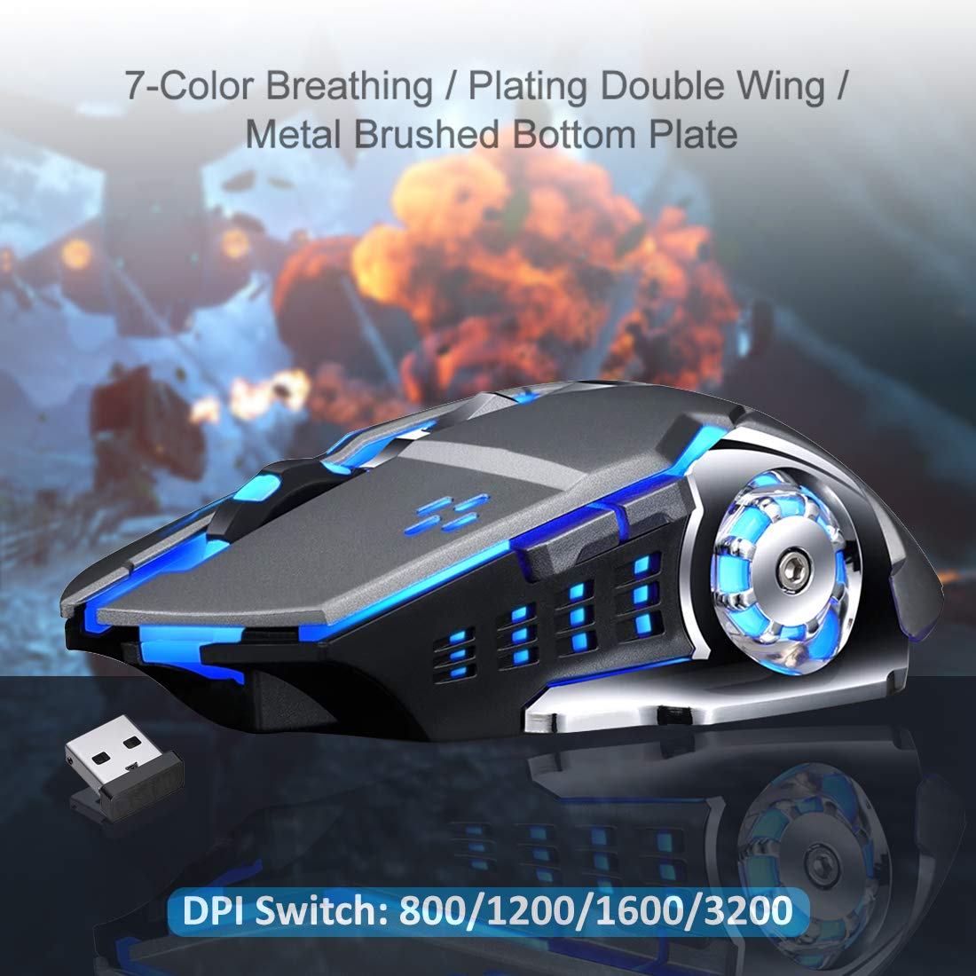 Xmate Zorro Pro 3200DPI, Rechargeable 2.4Ghz Wireless Gaming Mouse with USB Receiver, 6 Button, 7 Colors Backlit for Computer PC, Laptop, 600Mah Lithium Battery with ABS Body for Gamers: