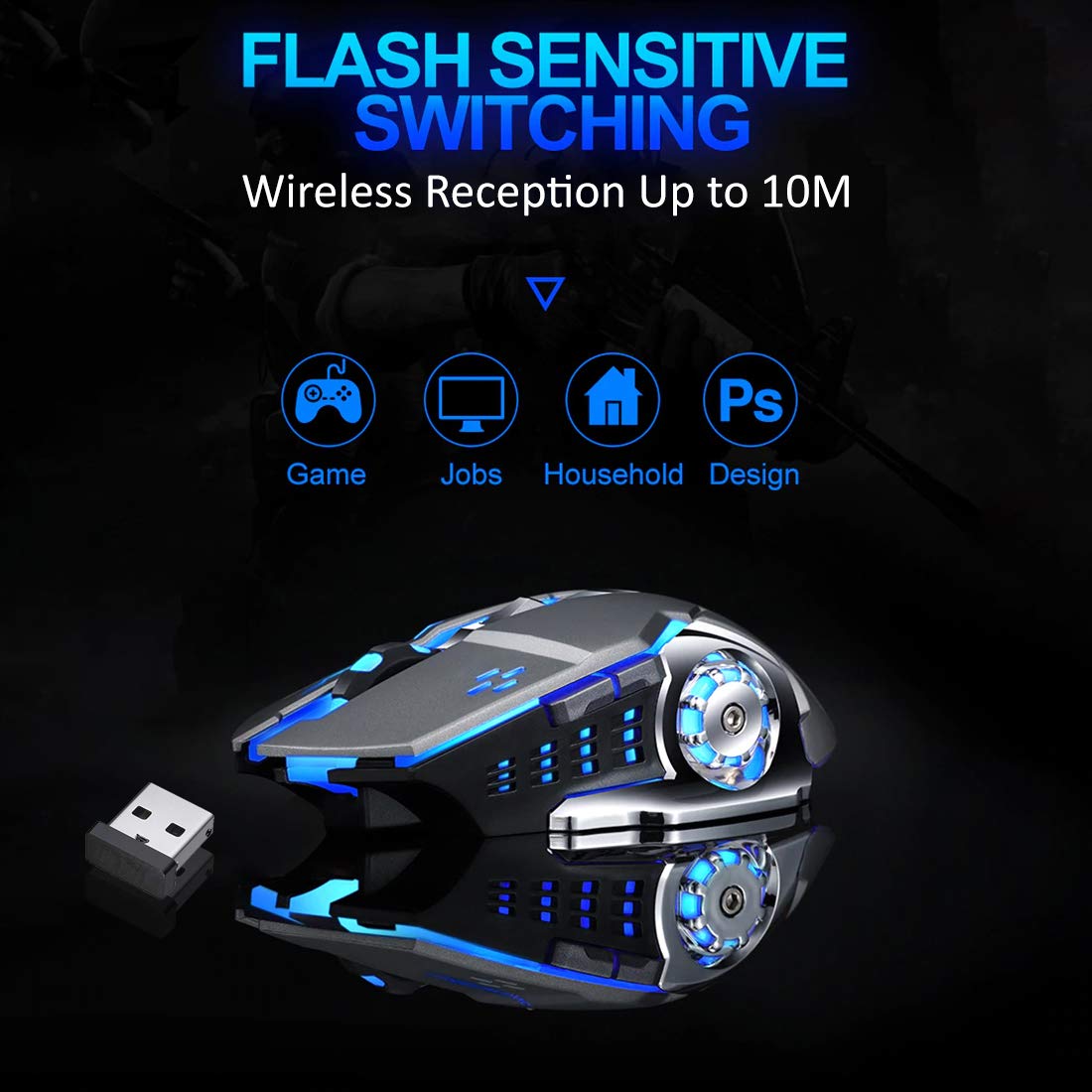 The response is near-instantaneous. Response rate represents the data transmission speed between the mouse and computer, a higher rate of response in games competitions can better play the performance of the mouse and allows the mouse to be zero delays and no jump during fierce gaming, which is more realistic for gaming players.